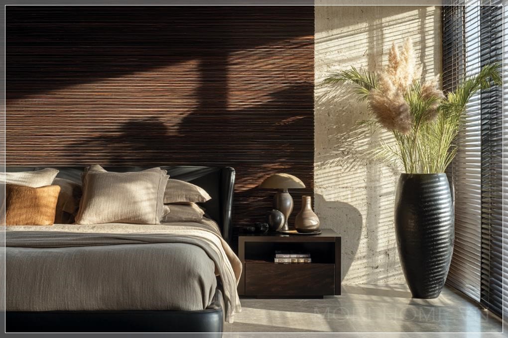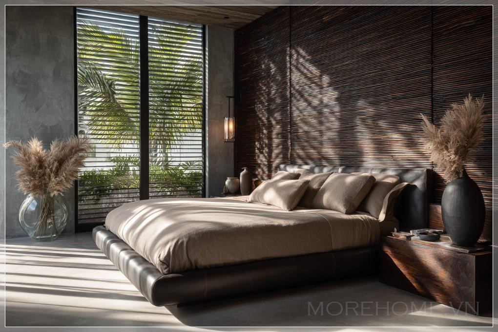 Phong cách thiết kế gợi nhớ đến sự tinh giản đặc trưng của Axel Vervoordt, nhưng được thổi hồn bằng chất nhiệt đới hiện đại – nơi mọi đường nét, vật liệu và ánh sáng đều góp phần khắc họa một không gian sống cao cấp, yên bình và đầy thi vị. Đây không chỉ là một phòng ngủ, mà còn là một bản giao hưởng thị giác về vẻ đẹp thanh thoát giữa tự nhiên và kiến trúc đương đại.