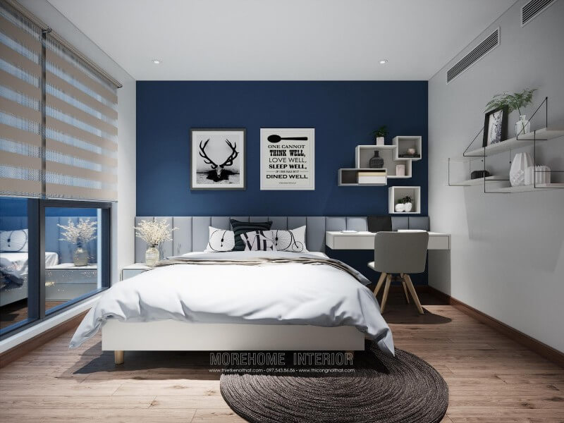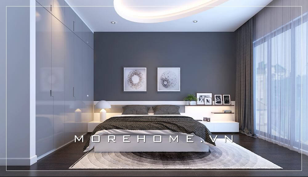 Giường ngủ chung cư hiện đại được làm từ chất liệu gỗ công nghiệp gam màu trắng chủ đạo mang lại không gian phòng ngủ dầy thanh lịch và cuốn hút